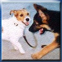 しばらくすると体重が38キロもあるのにスマートな体の大きなアスランが、彼女の側につながれたのです。憧れとちょっと怖かったアスランも、今や強くなったフローラにはたいしたことなく思えました。アスランはレッスンしているラブラドールのナナを熱心に見ていて、フローラが側にいることなど眼中に無いのも彼女は気に入りませんでした。 するとテリアの血が騒ぎ出し、彼女は大きなアスランの肩に小さな手をバシッと置きました。とたんに雷のような大声でアスランが「ガオーッ!」と怒鳴りました。「威張るなッ!チビッ!」と怒ったのです。フローラは目にもとまらぬ速さで飛び退き、アスランと目が合わないように後ろを向いて座りました。