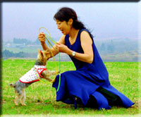 『コイ』を確実にしようと教える順番は、犬にいろいろな芸を教えたり歩行訓練をした後の犬が人を尊敬しだした頃にしましょう.